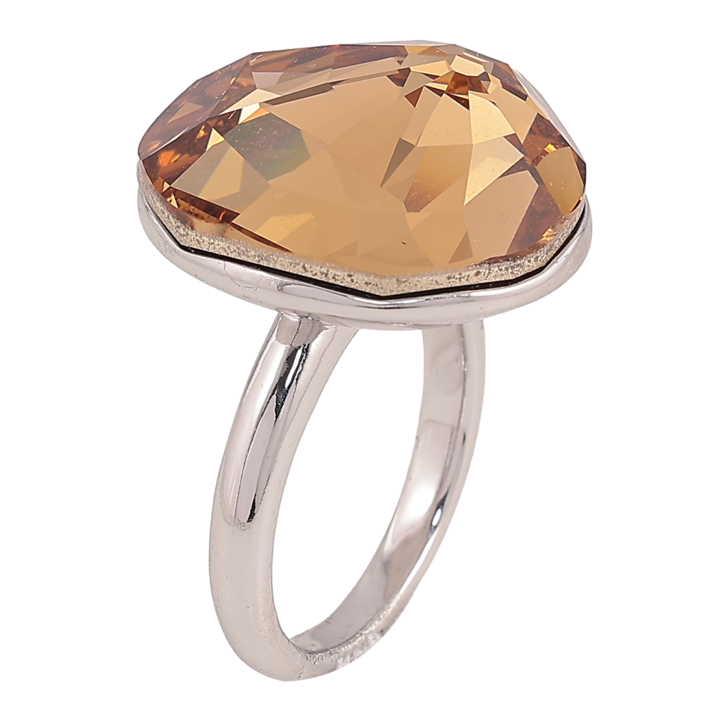 Каблучка Xuping колір Родій із кристалами Swarovski "Великий кристал Smoked Topaz" 20х23мм