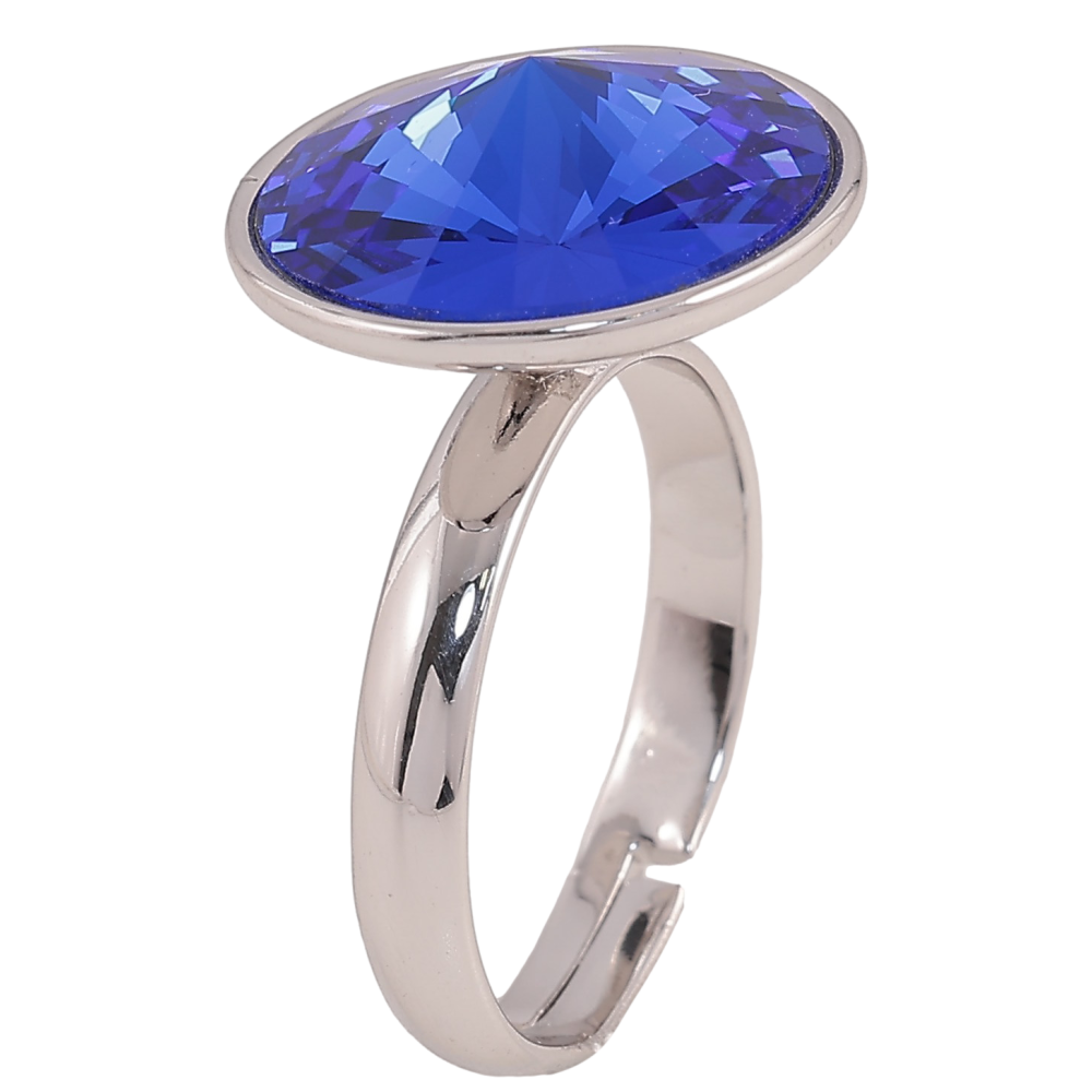 Каблучка Xuping колір Родій з кр-ми Swarovski "Кристал Capri Blue ø 16мм"