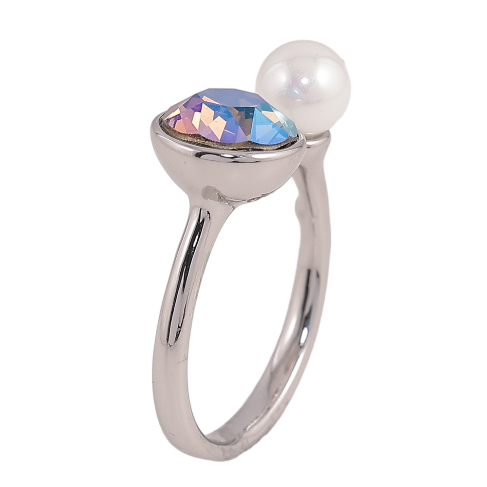 Каблучка Xuping колір Родій з кр-ми Swarovski "Кристал Erinite АВ з перлами, ø 6мм та 9мм"