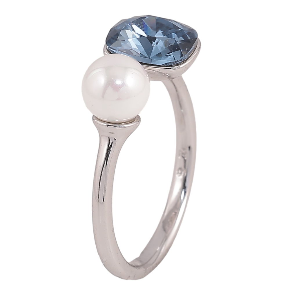 Каблучка Xuping колір Родій з кр-ми Swarovski "Кристал Montana з перлами, ø 6мм, 6х8мм"