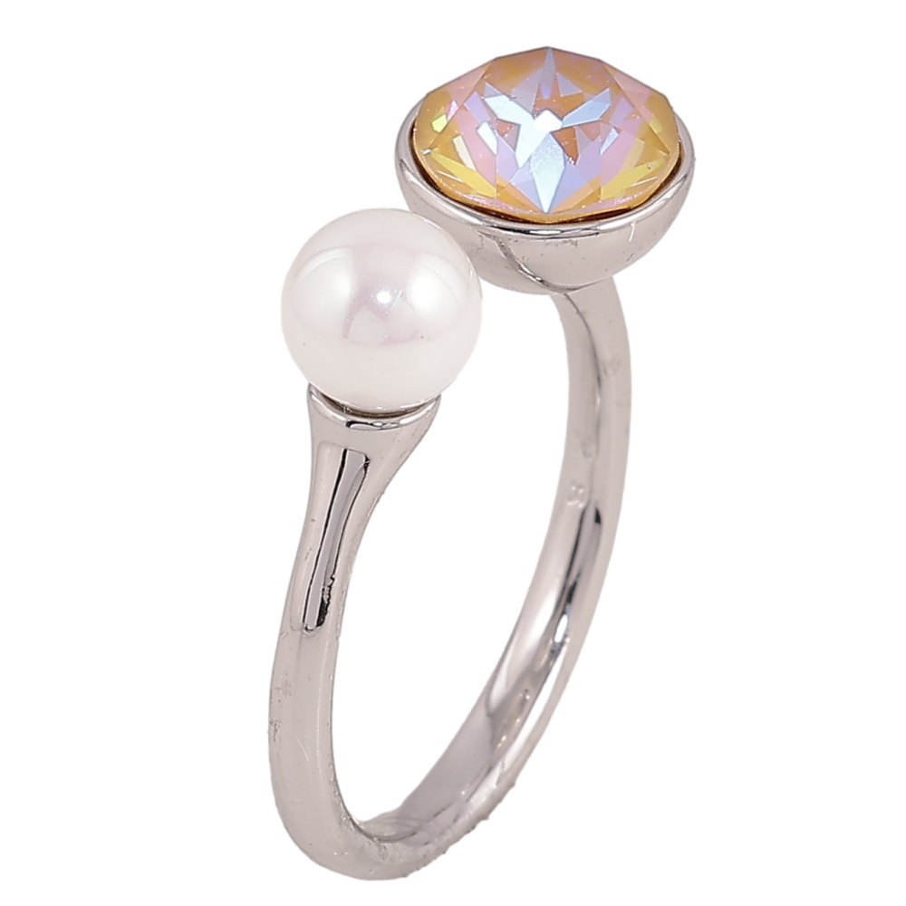 Каблучка Xuping колір Родій з кр-ми Swarovski "Кристал Ochre Delite з перлиною" ø 7 і 9см