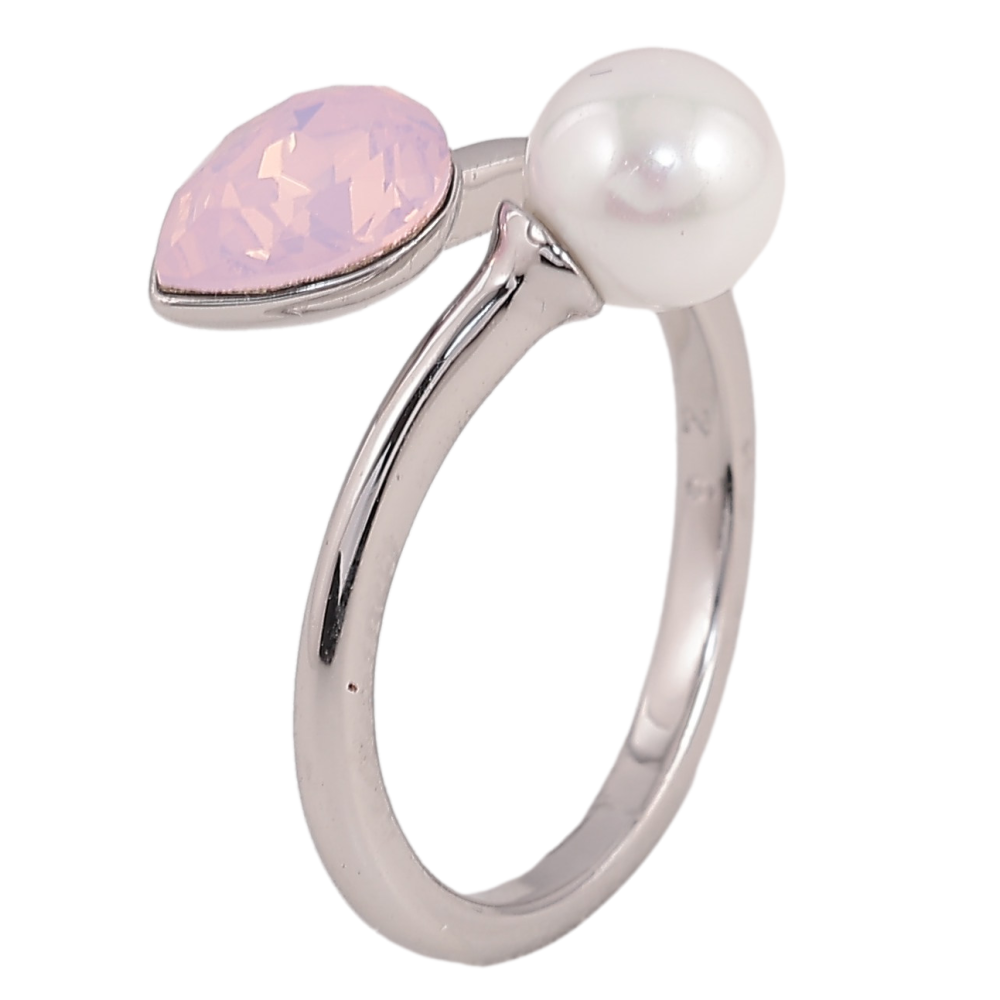 Каблучка Xuping колір Родій з кр-ми Swarovski "Кристал Pink Opal з перлиною"