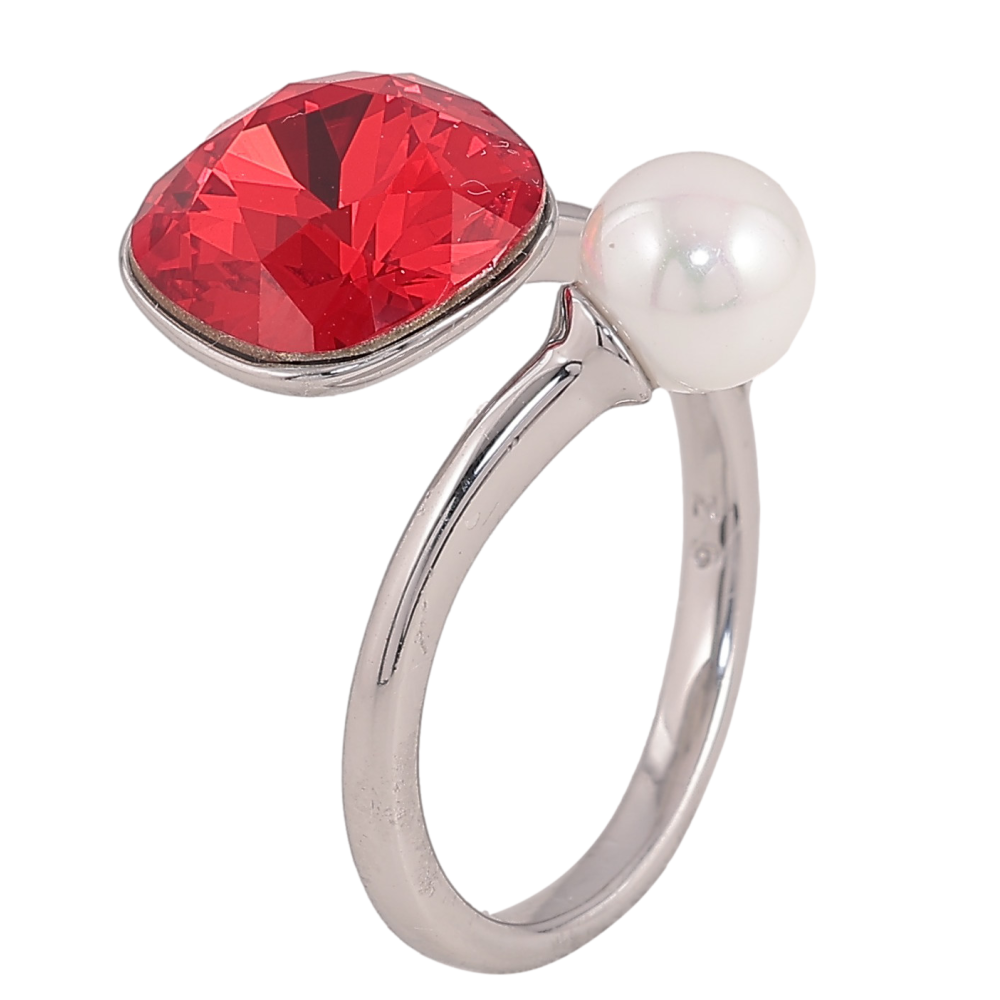 Каблучка Xuping колір Родій з кр-ми Swarovski "Кристал Siam з перлиною, ø 10мм та 6мм"