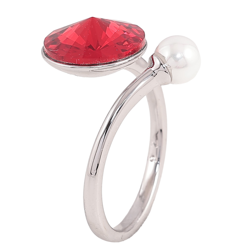 Каблучка Xuping колір Родій з кр-ми Swarovski "Кристал Siam з перлиною, ø 5мм и 11мм"