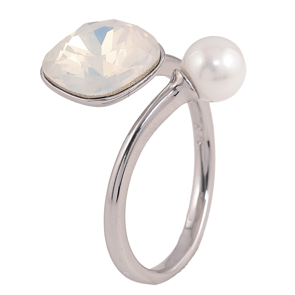 Каблучка Xuping колір Родій з кр-ми Swarovski "Кристал White Opal з перлиною, ø 10мм та 6мм"