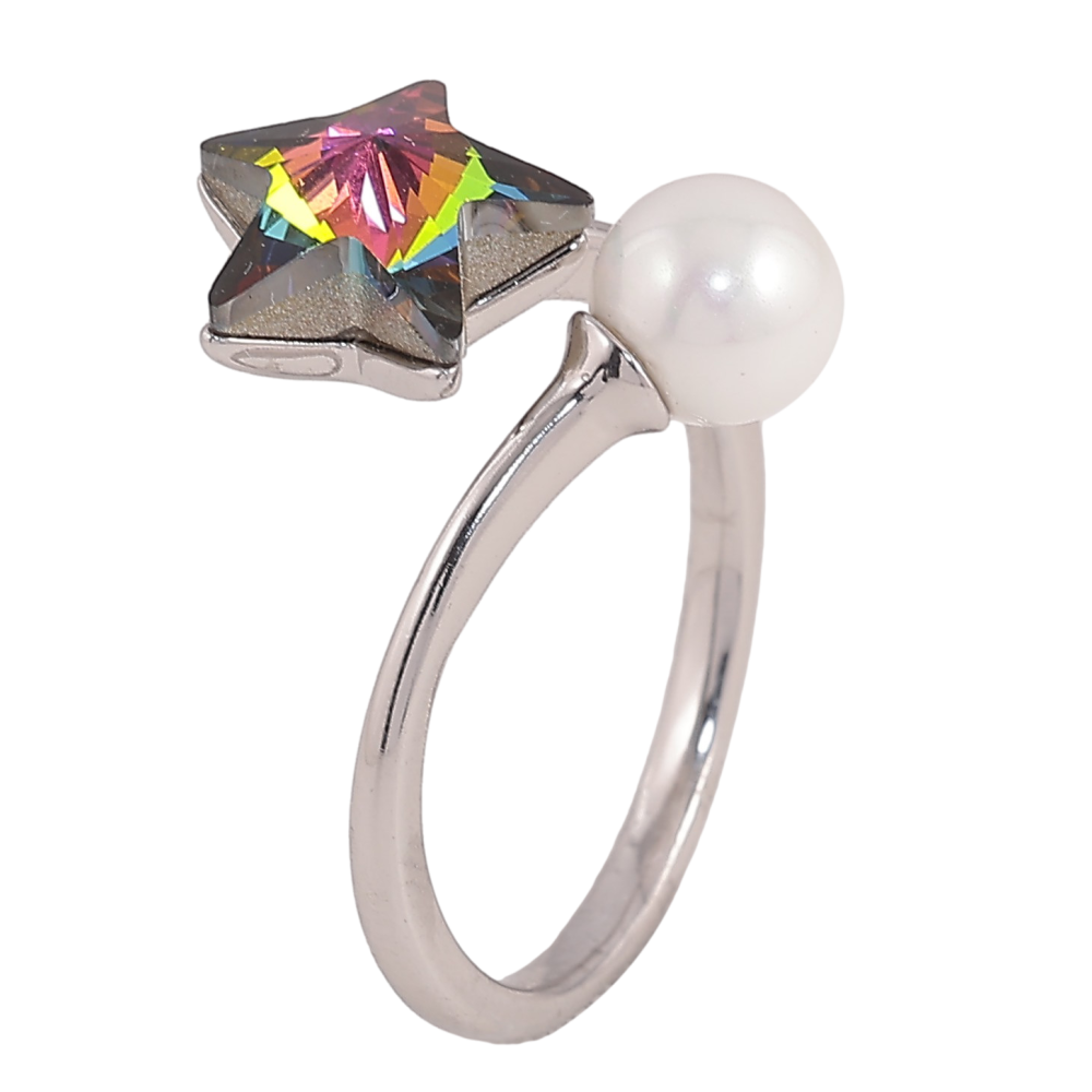 Каблучка Xuping колір Родій з кр-ми Swarovski "Кристальна зірка Vitrail Medium з перлиною"