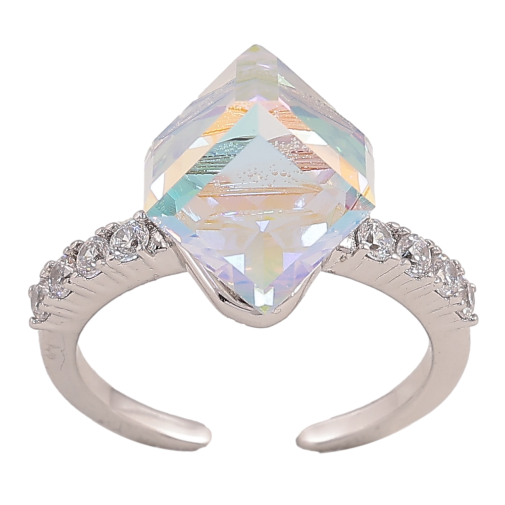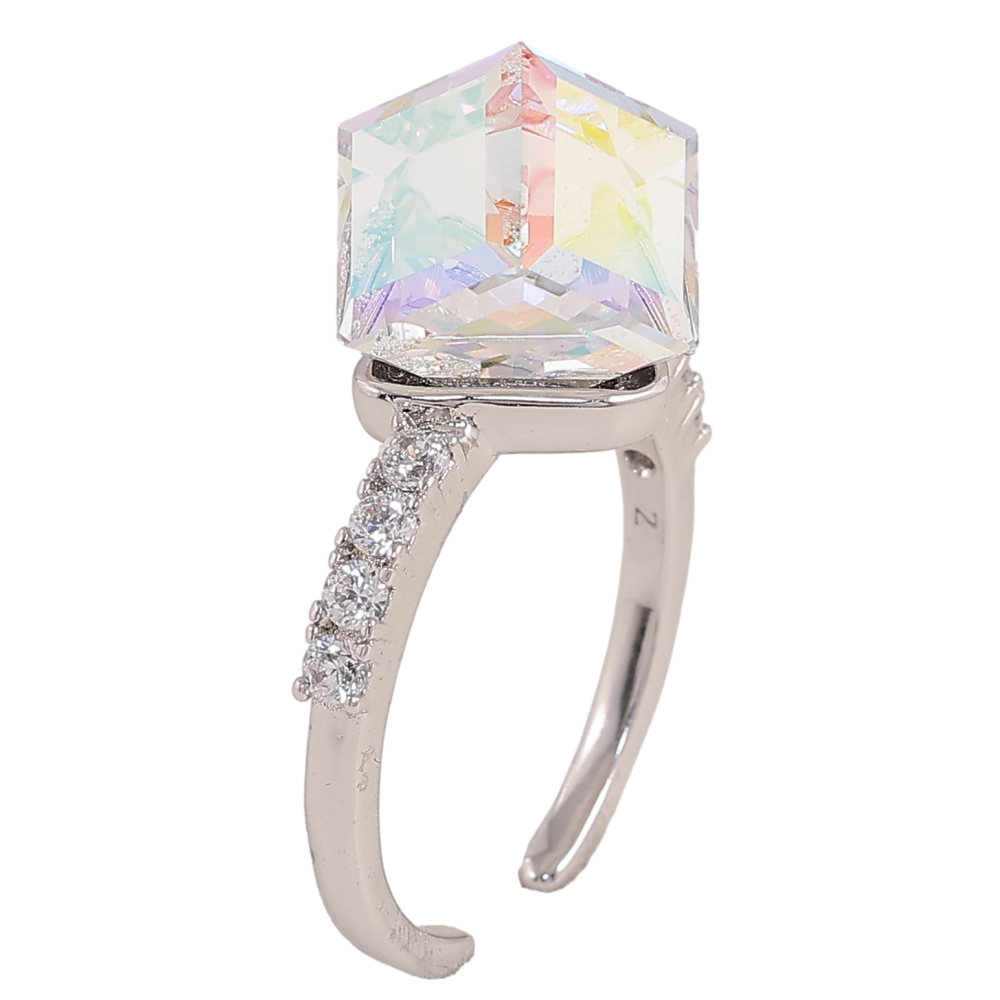 Каблучка Xuping колір Родій з кр-ми Swarovski "Кристальний куб АВ, 8х8мм"