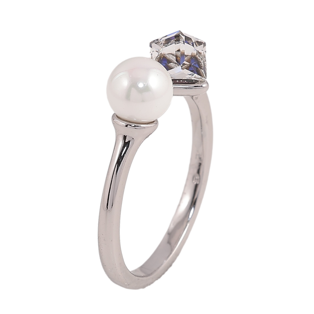 Каблучка Xuping колір Родій з кр-ми Swarovski "Кристальний кубик Metallic Blue з перлами, ø 6мм, 4х4мм"