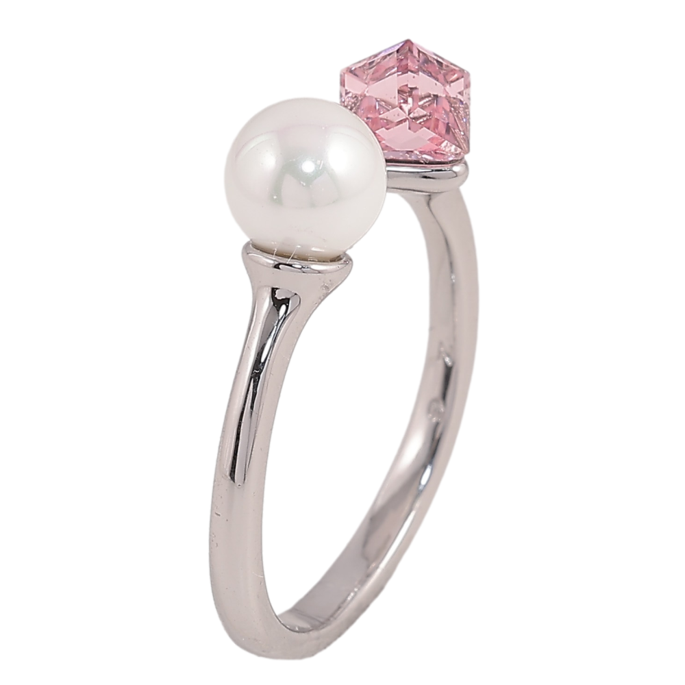 Каблучка Xuping колір Родій з кр-ми Swarovski "Кристальний кубик Rose з перлами, ø 6мм, 4х4мм"