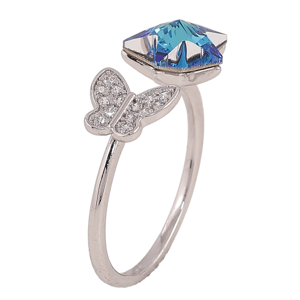Каблучка Xuping колір Родій з кр-ми Swarovski "Метелик з кристальною зіркою Metallic Blue"
