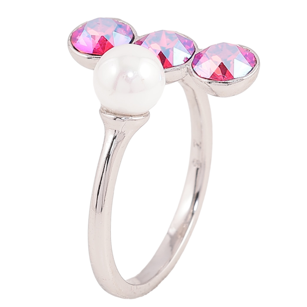 Каблучка Xuping колір Родій з кр-ми Swarovski "Три кристали Rose Shimmer з перлиною"