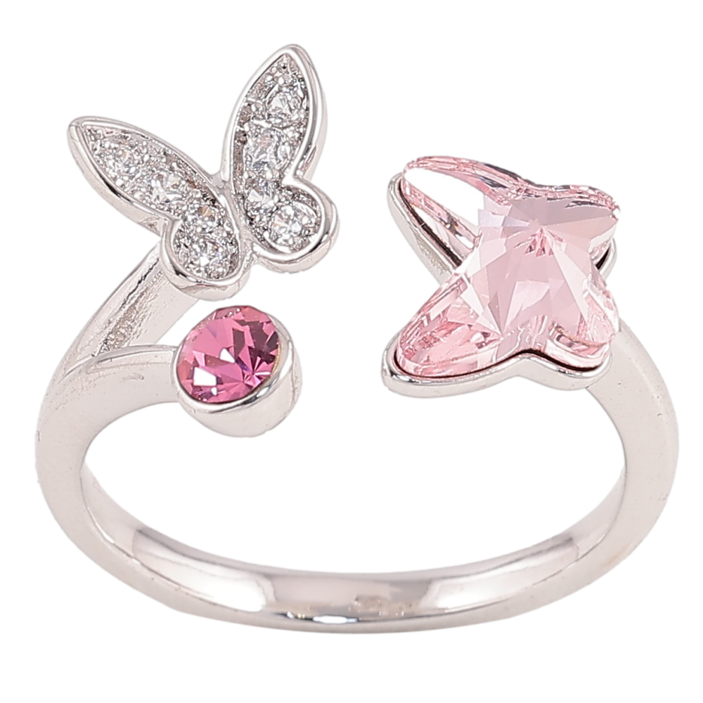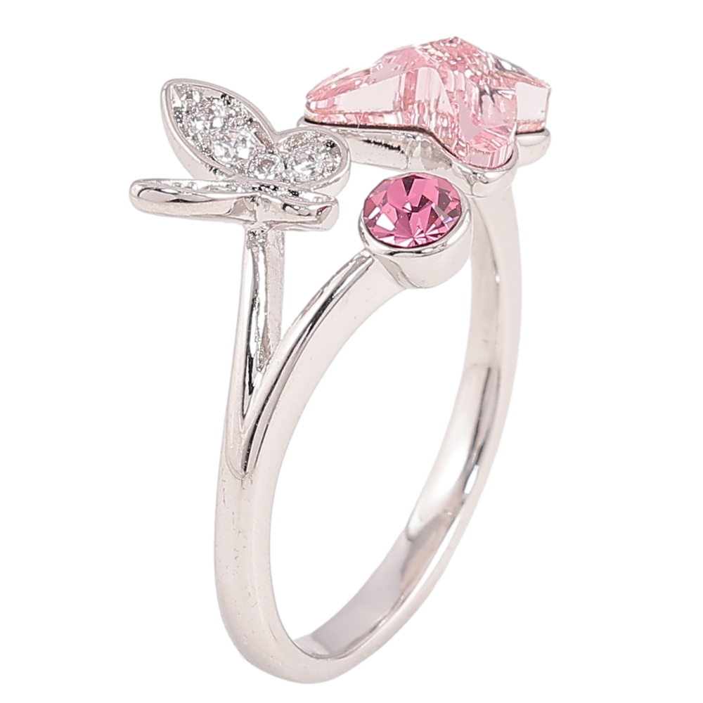 Каблучка Xuping колір Родій з кристалами Swarovski "Метелики з кристалом Rose та Fuchsia" вільний розмір