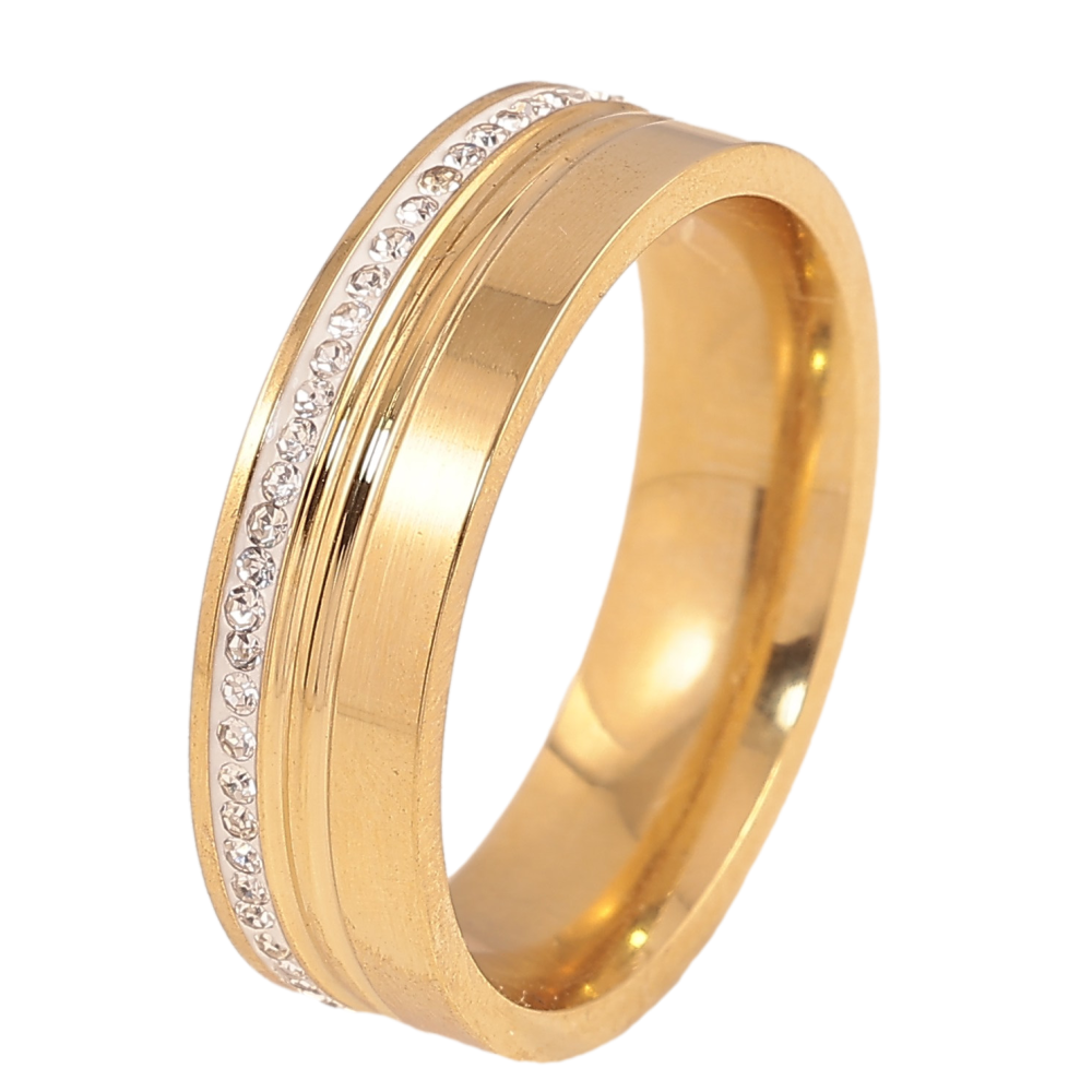 Каблучка Xuping TTM Stainless Steel колір 14К "Візерунок з кристалами" шир. 6мм