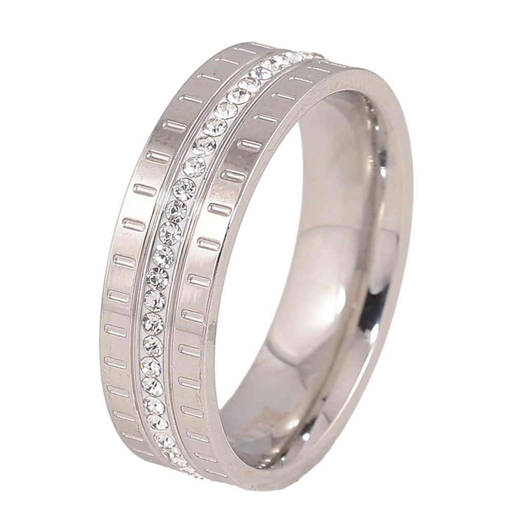 Каблучка Xuping TTM Stainless Steel колір Родій "Доріжка кристалів" шир. 6мм