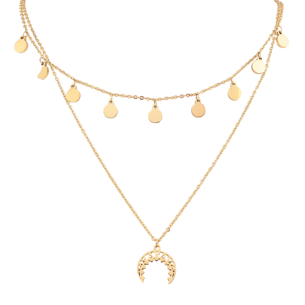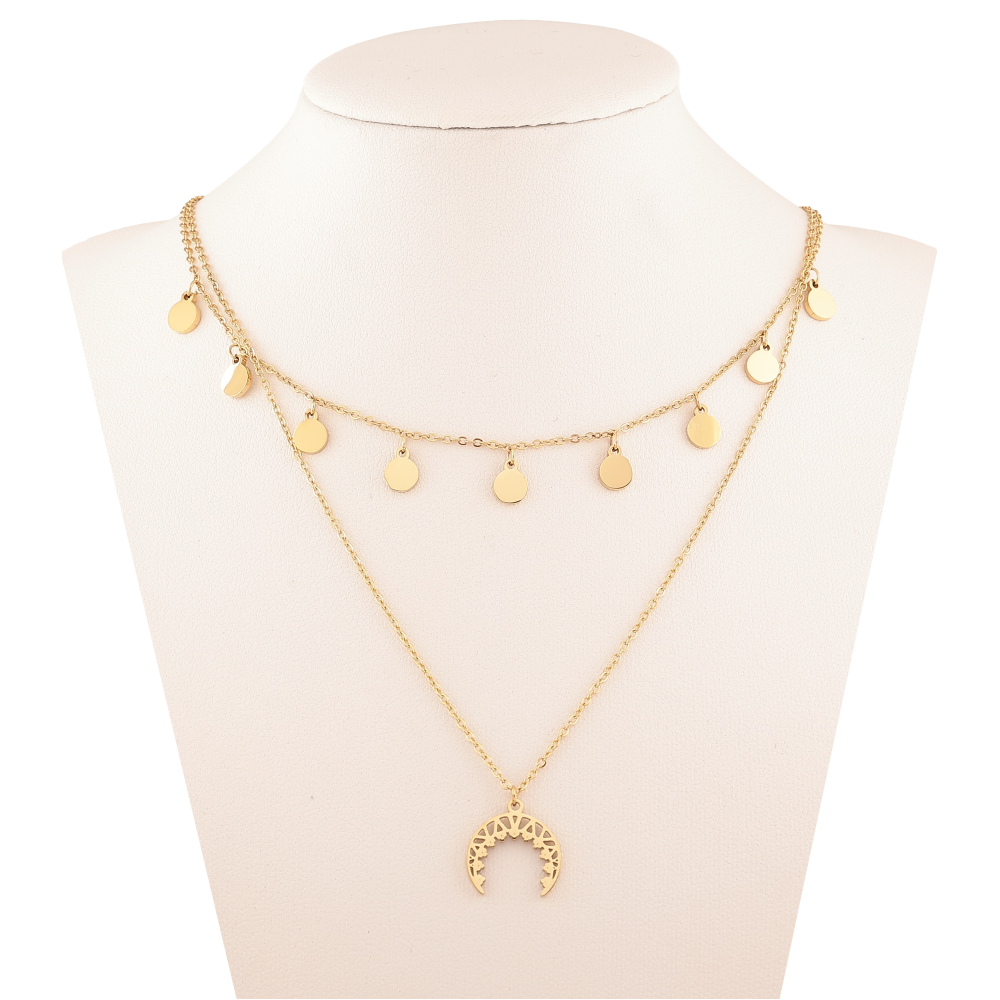 Кольє Нержавіюча сталь "Подвійний ланцюжок з підвісками" довжина 36-41см х 1,5мм