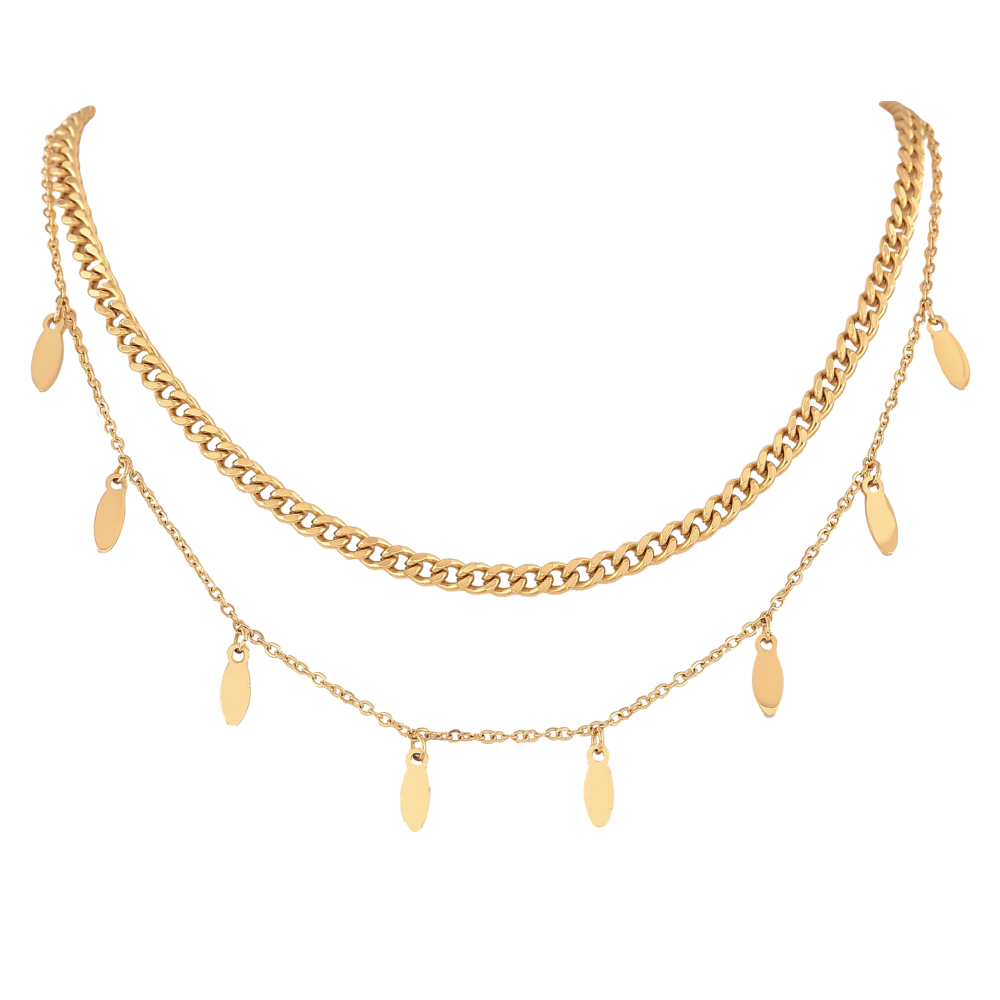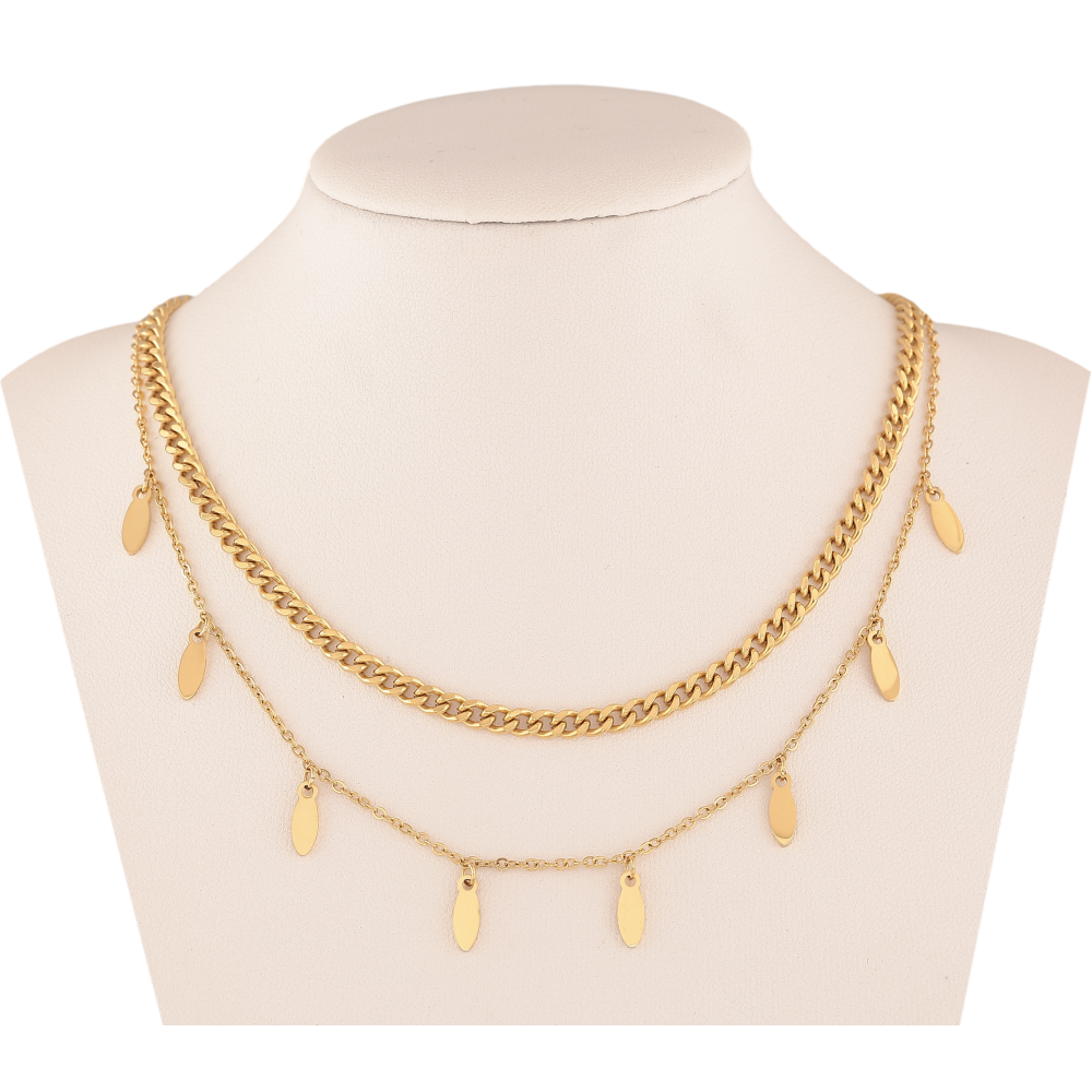 Кольє Нержавіюча сталь "Подвійний ланцюжок з підвісками" довжина 39-44см х 1,5-4мм