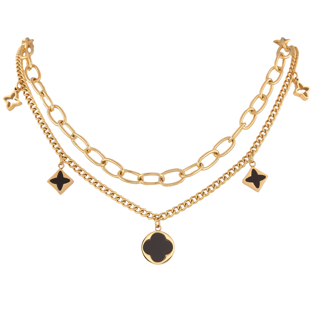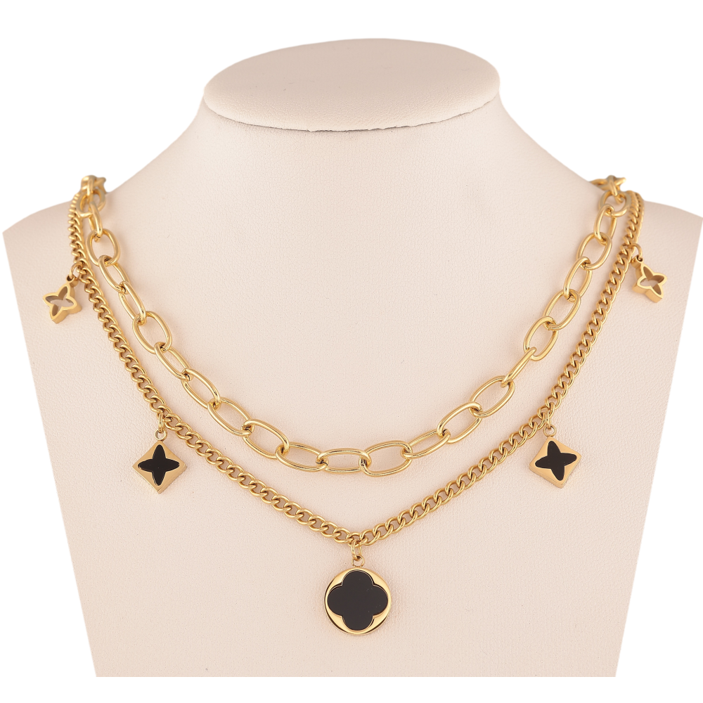 Кольє Нержавіюча сталь "Подвійний ланцюжок з підвісками конюшина" довжина 40-45см х 3-6мм