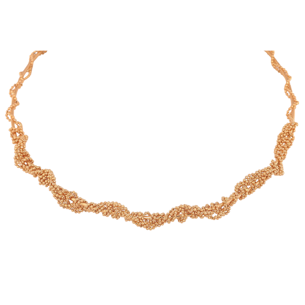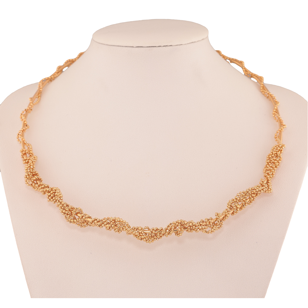Кольє Xuping колір Позолота 18K "Жорсткий шнур з переплетеними ланцюжками" ø 12см+3,5см х 5-8мм