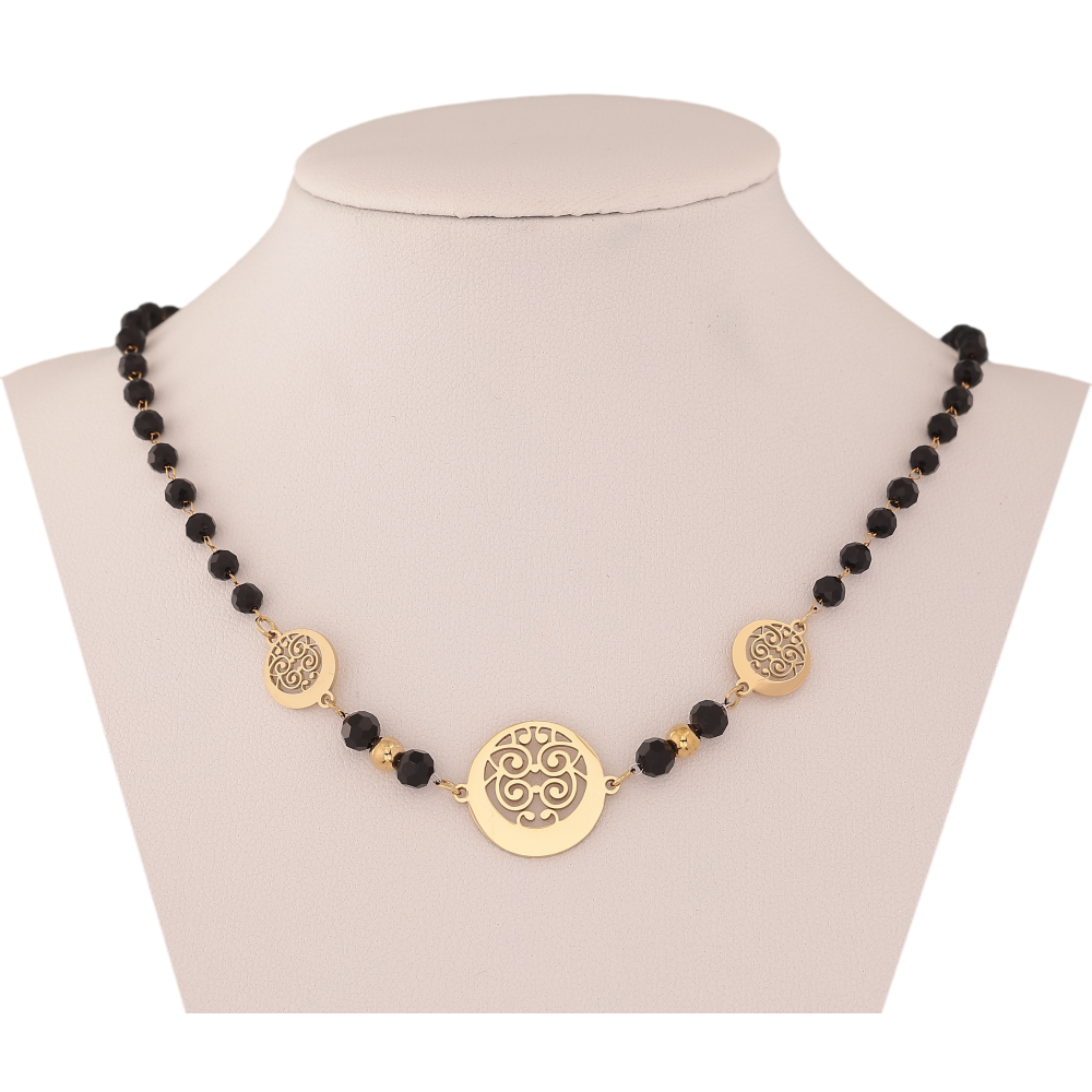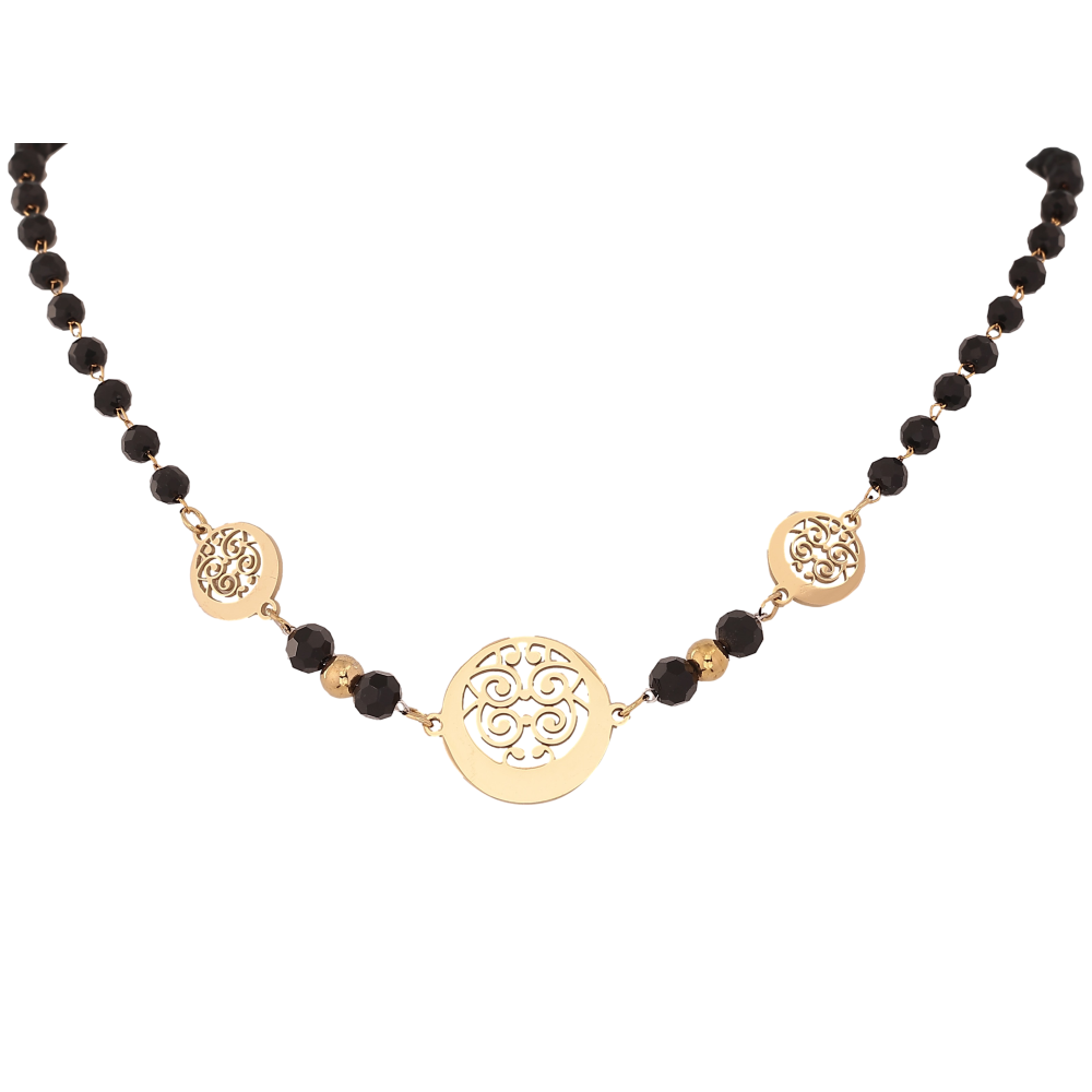 Кольє Xuping ТТМ Stainless Steel колір 14К "Чорні намистини з ажурними вставками" довжина 43-49см х 4-15мм
