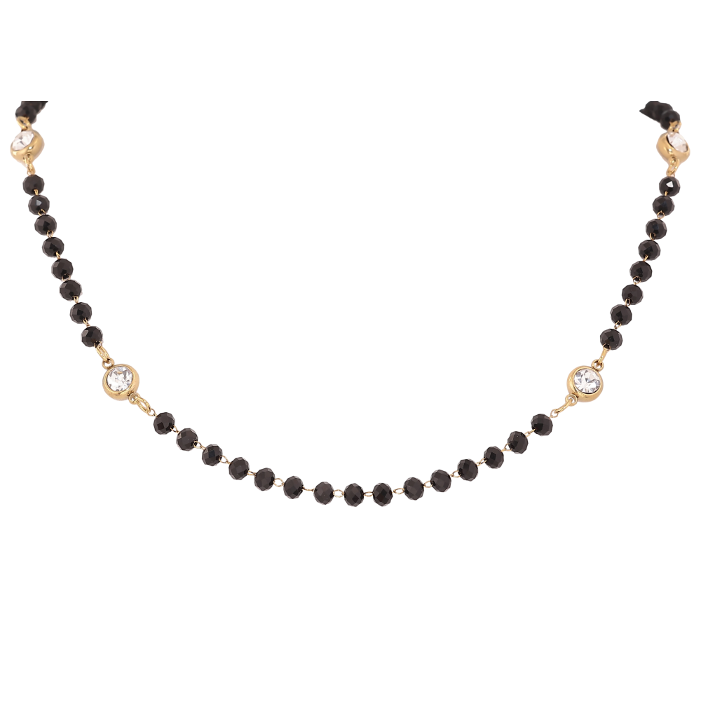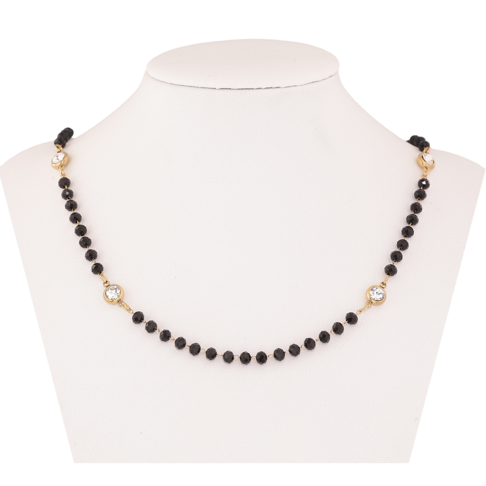 Кольє Xuping ТТМ Stainless Steel колір 14К "Чорні намистини з кристалами" довжина 45-50см х 4-6мм
