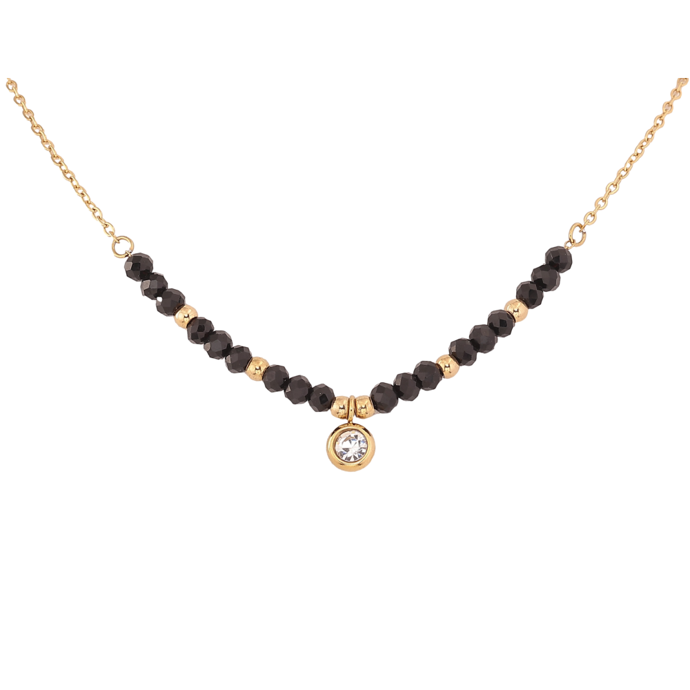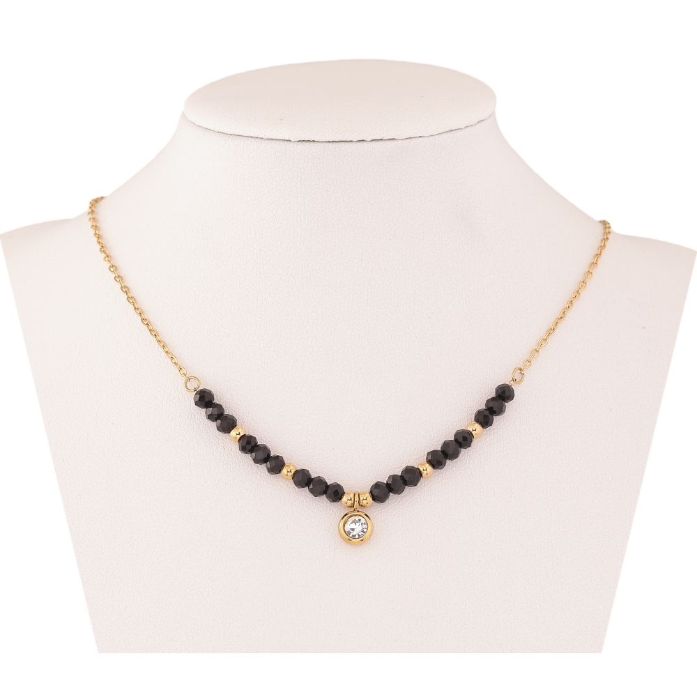 Кольє Xuping ТТМ Stainless Steel колір 14К "Чорні намистини з кристалом" довжина 46-51см х 1.5-4мм