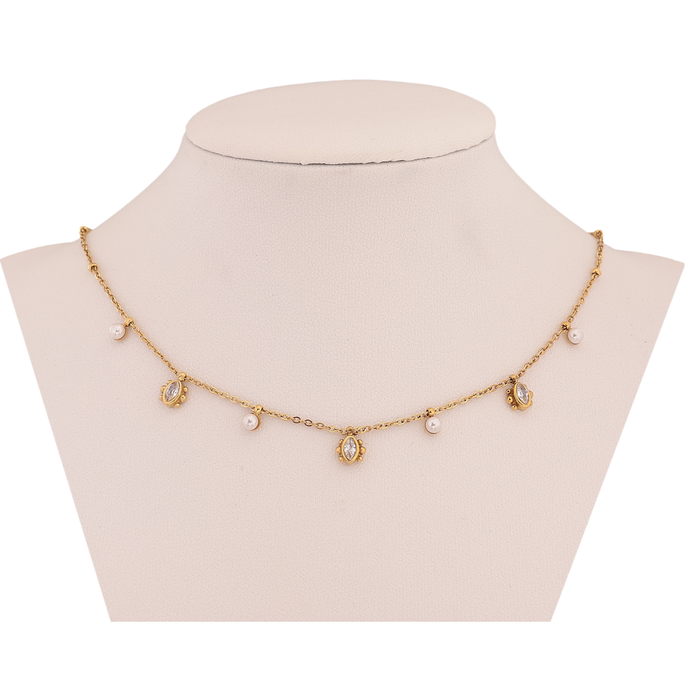 Кольє Xuping ТТМ Stainless Steel колір 14К "Ланцюжок з кристальними та перлинними підвісками" довжина 40-46см х 1-2мм