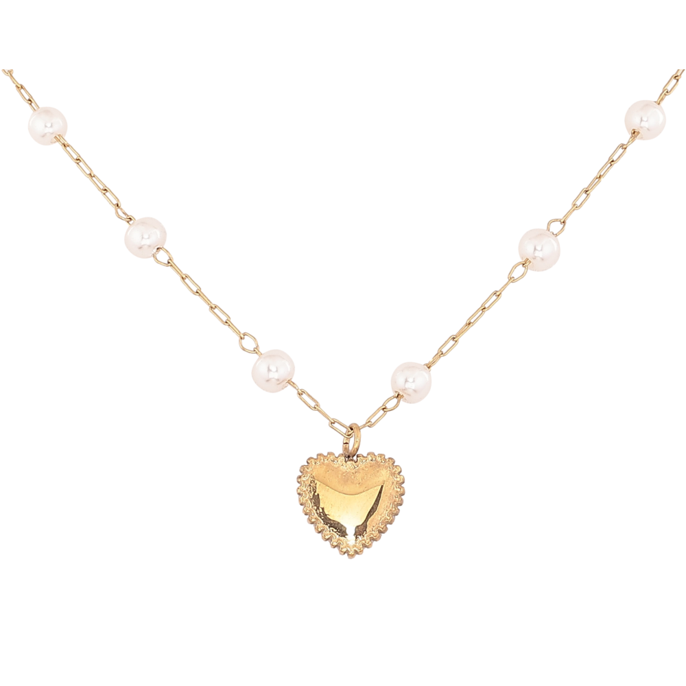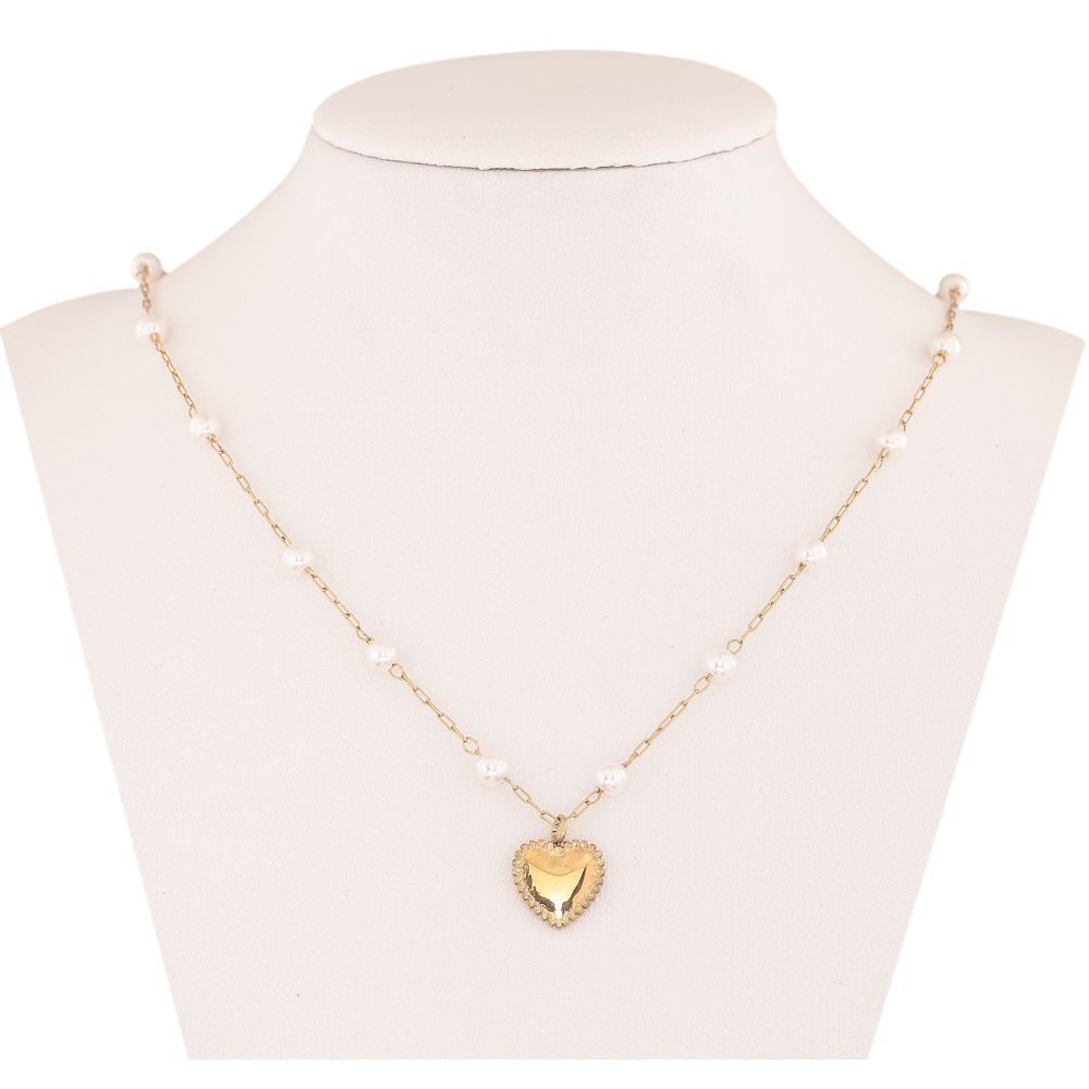 Кольє Xuping ТТМ Stainless Steel колір 14К "Ланцюжок з перлинними намистами і серцем" довжина 44-49см х 1-4мм