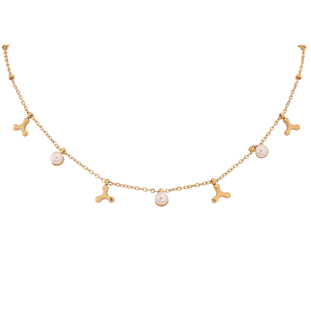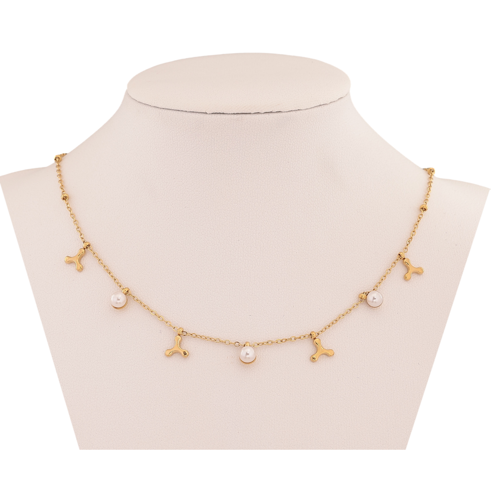 Кольє Xuping ТТМ Stainless Steel колір 14К "Ланцюжок з підвісками та перлинами" довжина 42-47см х 1-2мм