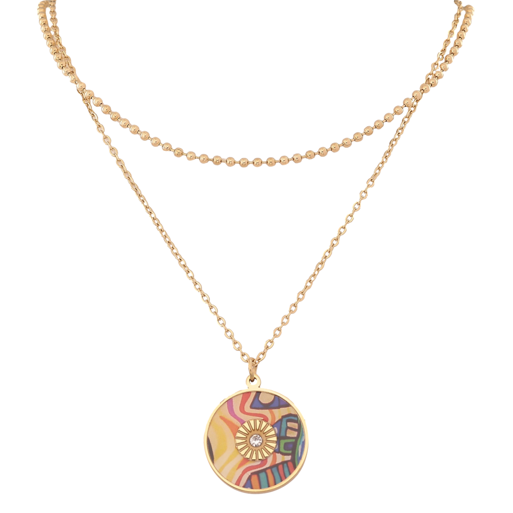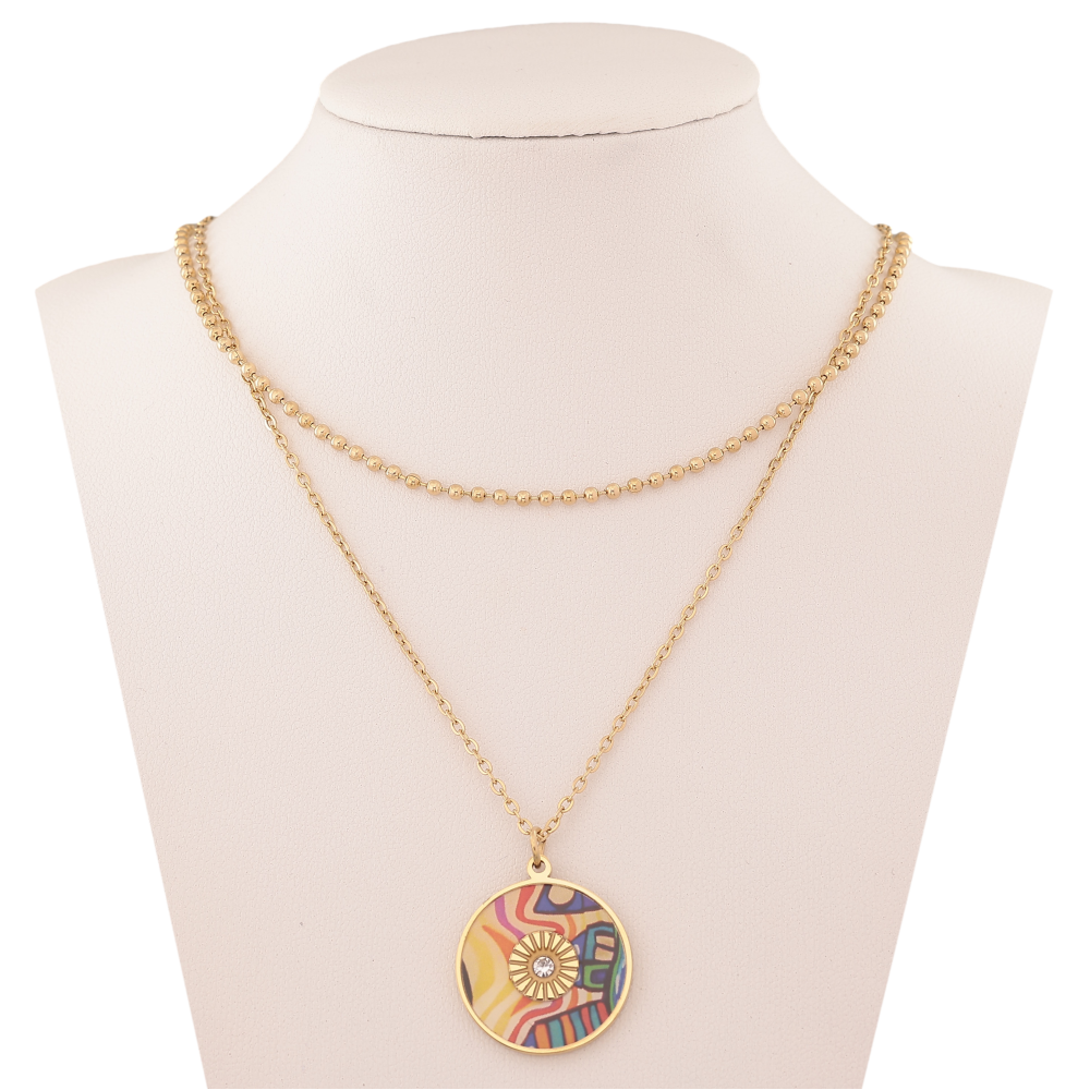 Кольє Xuping ТТМ Stainless Steel колір 14К "Подвійний ланцюжок з кольоровою підвіскою" довжина 42-47см х 2мм