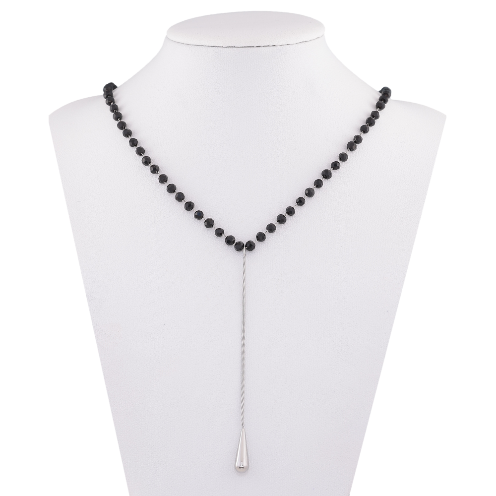 Кольє Xuping ТТМ Stainless Steel колір Родій "Чорні намистини з підвіскою" довжина 40-45см х 3мм