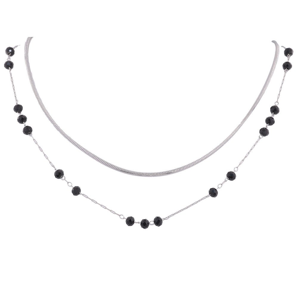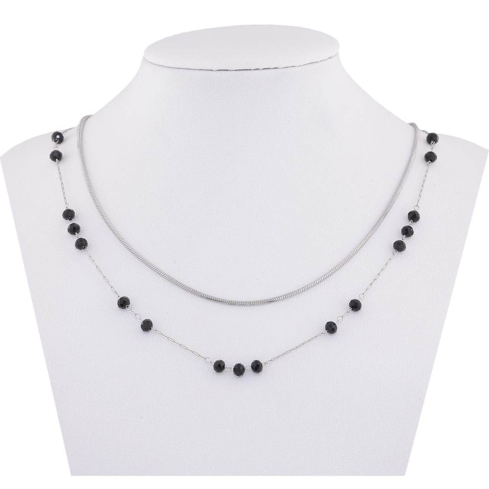 Кольє Xuping ТТМ Stainless Steel колір Родій "Подвійний ланцюжок з чорними намистинами" довжина 41-46см х 1-3мм