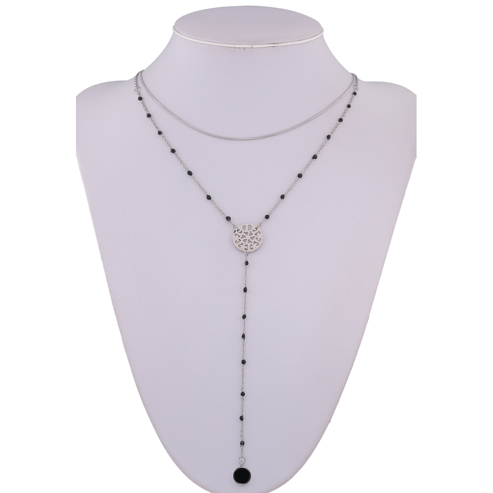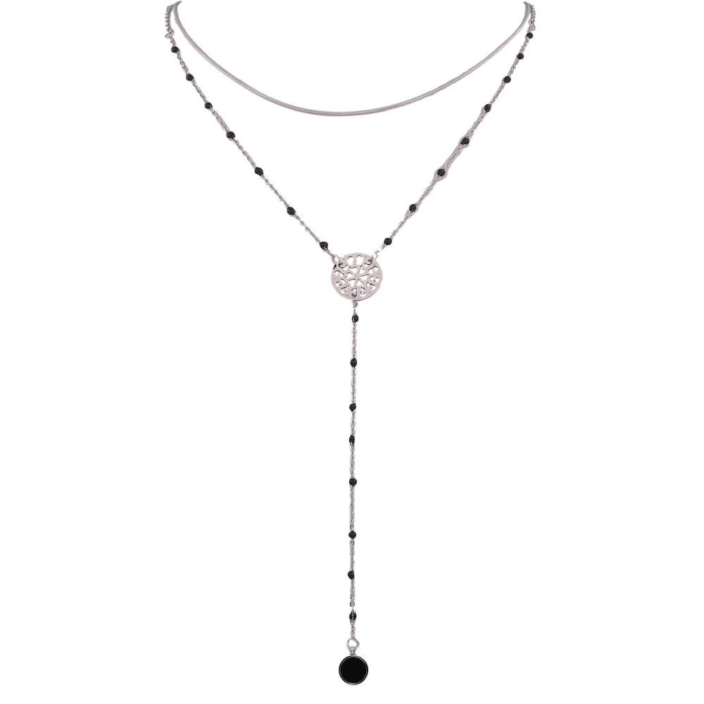 Кольє Xuping ТТМ Stainless Steel колір Родій "Подвійний ланцюжок з довгою підвіскою" довжина 40-45см х 1-1.5мм
