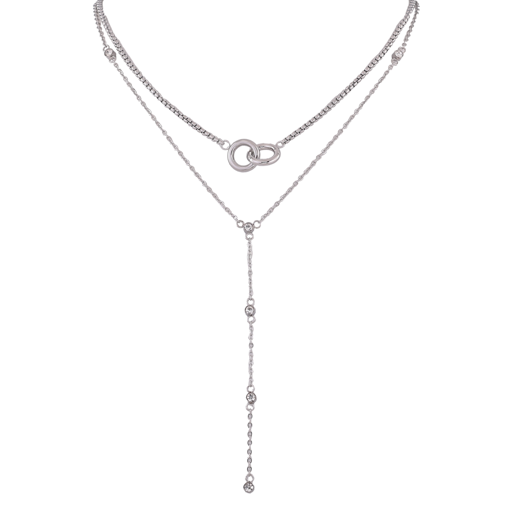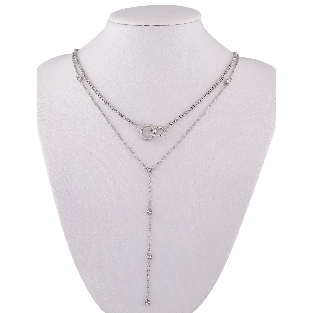 Кольє Xuping ТТМ Stainless Steel колір Родій "Подвійний ланцюжок з кільцями" довжина 42-47 см х 1.5-2мм