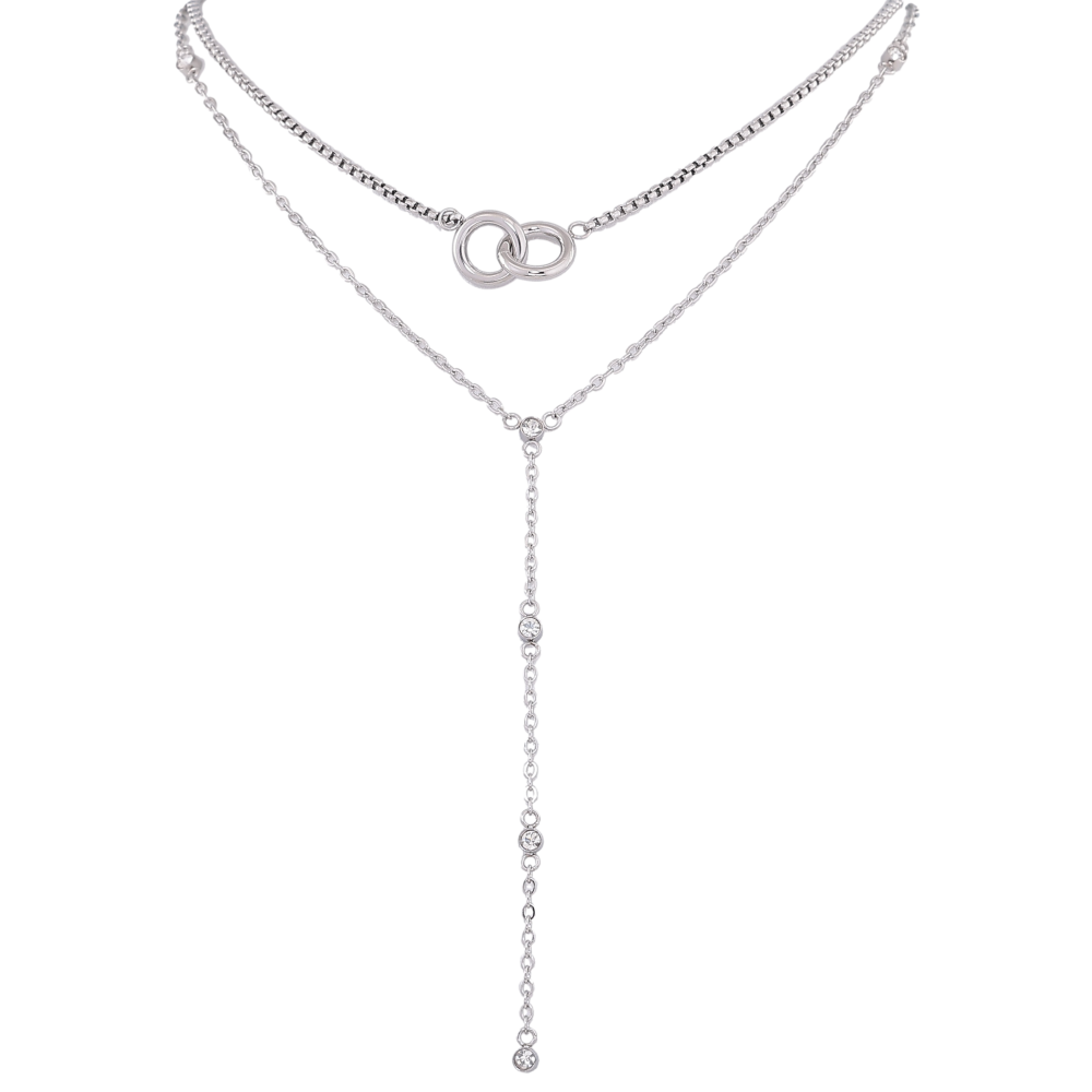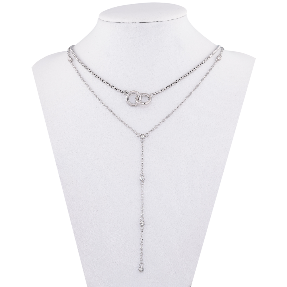 Кольє Xuping ТТМ Stainless Steel колір Родій "Подвійний ланцюжок з підвіскою" довжина 42-47см х 2мм