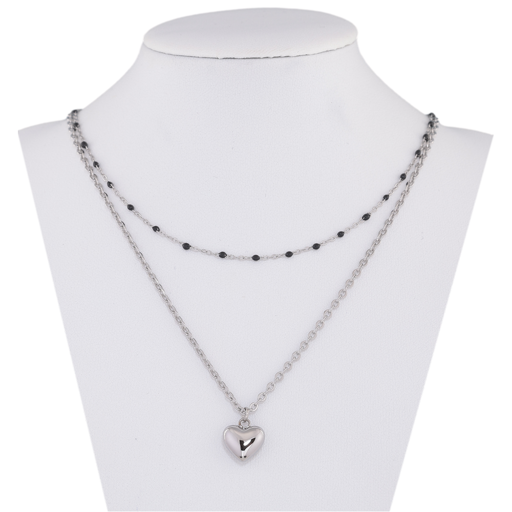 Кольє Xuping ТТМ Stainless Steel колір Родій "Подвійний ланцюжок з серцем" довжина 41-45см х 3мм