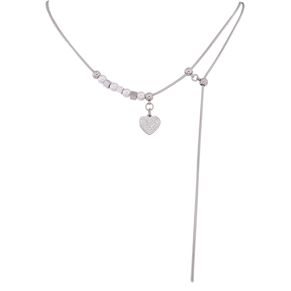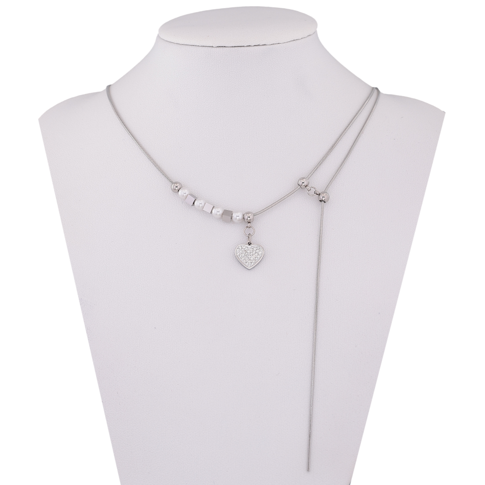 Кольє Xuping ТТМ Stainless Steel колір Родій "Сердечко" довжина 46-51см х 1мм
