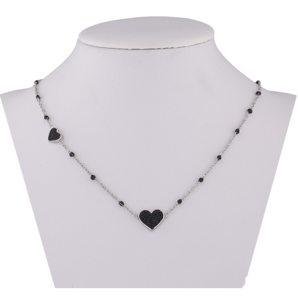 Кольє Xuping ТТМ Stainless Steel колір Родій "Сердечки з чорними кристалами та емаллю" довжина 45-50см х 1.5-8мм