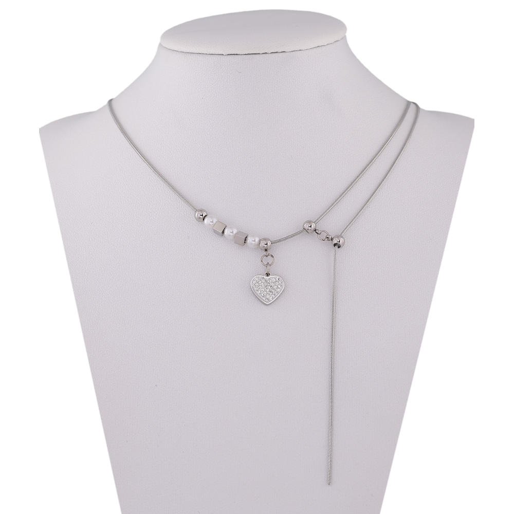 Кольє Xuping ТТМ Stainless Steel колір Родій "Серце" довжина 47-51см х 1-2мм
