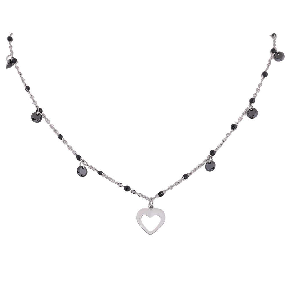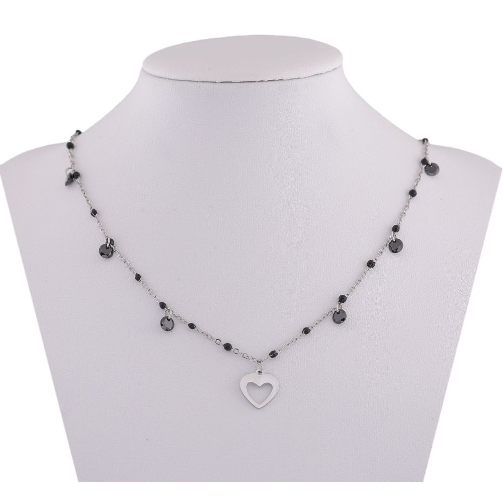 Кольє Xuping ТТМ Stainless Steel колір Родій "Серце з чорними кристалами" довжина 45-50см х 2мм