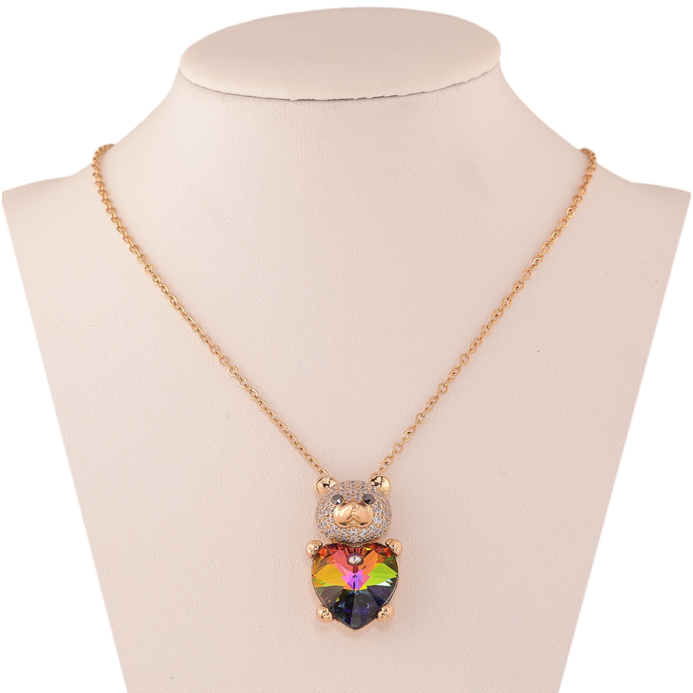 Кулон на ланцюжку Xuping колір 18K з кристалами Swarovski "Ведмедик з кристальним серцем Vitrail Medium" довжина 40-45см х 2мм