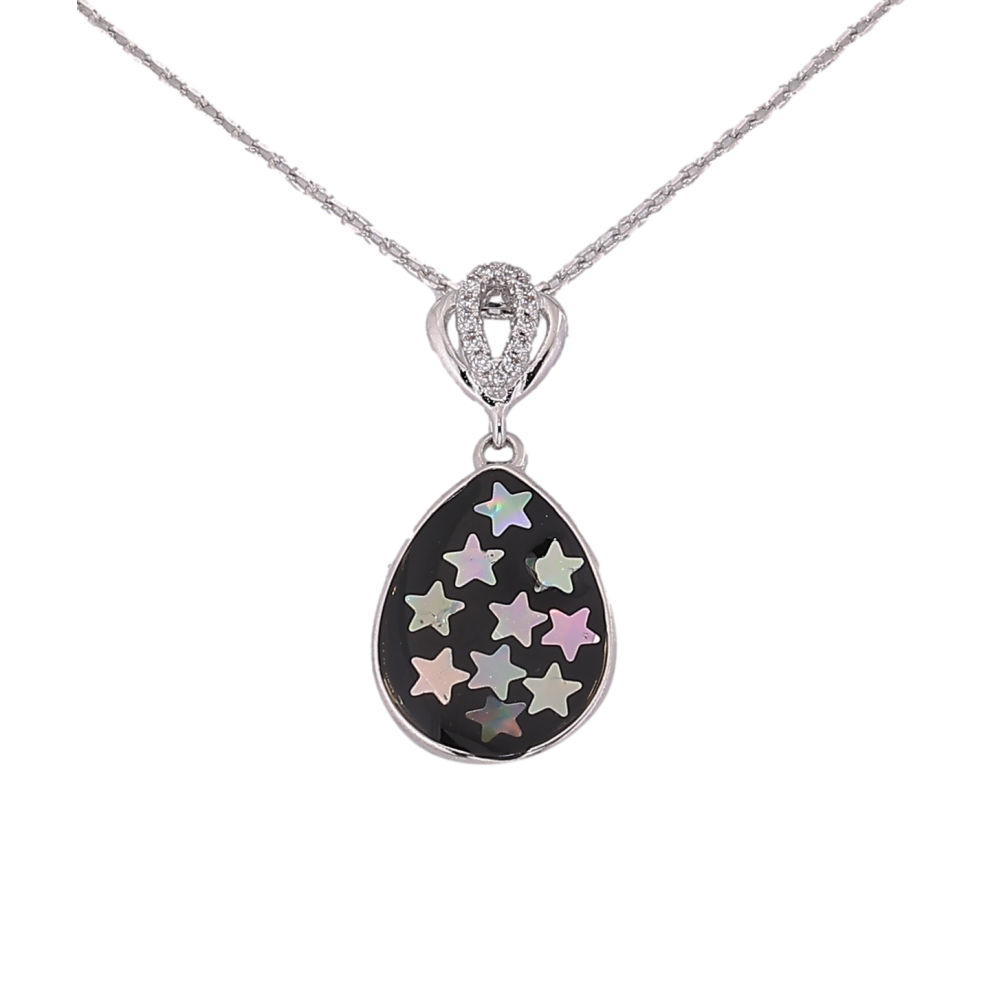 Кулон на ланцюжку Xuping колір Родій "Крапля з блискітками та емаллю" розмір 40-45см х 1мм