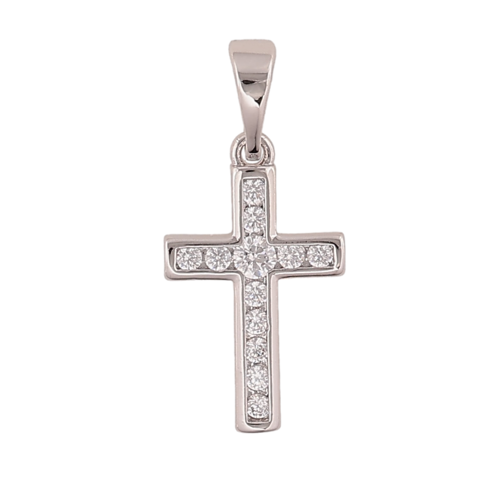 Кулон Xuping колір Родій "Хрест з кристалами" для ланцюжка до 5мм