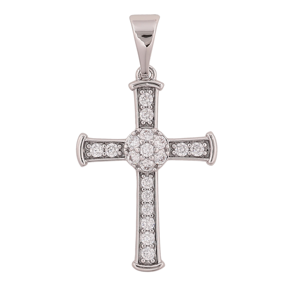 Кулон Xuping колір Родій "Хрест з кристалами" для ланцюжка до 7мм