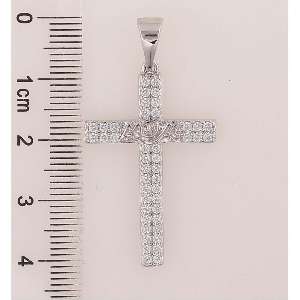 Кулон Xuping колір Родій "Хрест з кристалами та написом Мама" для ланцюжка до 7мм