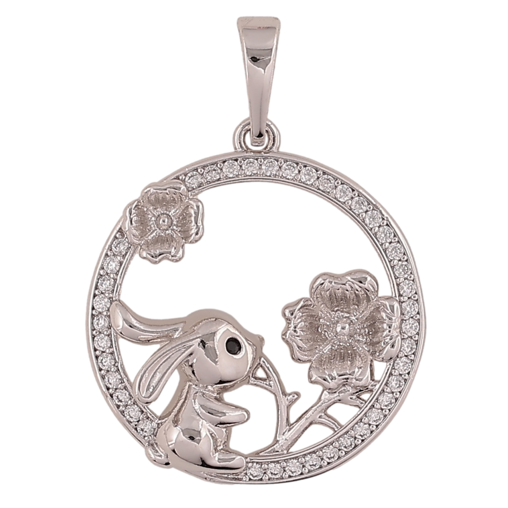 Кулон Xuping колір Родій "Зайчик з квіточкою" для ланцюжка до 6мм