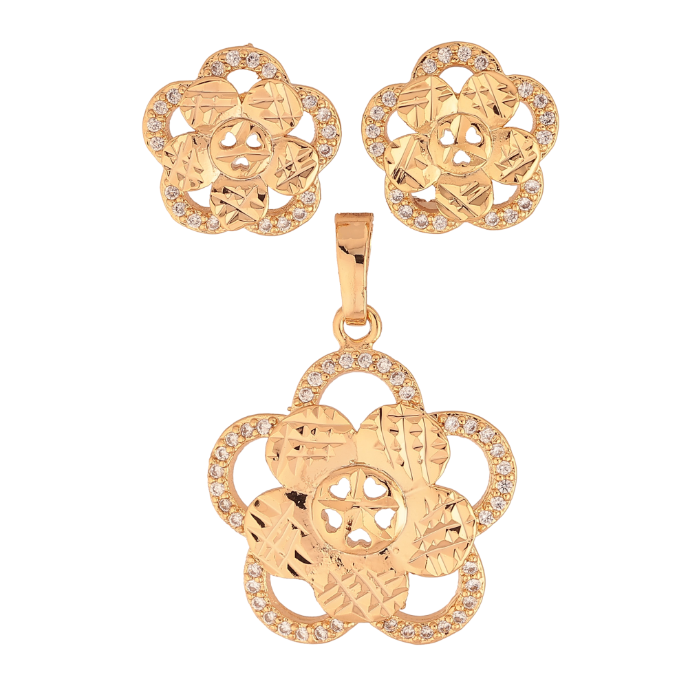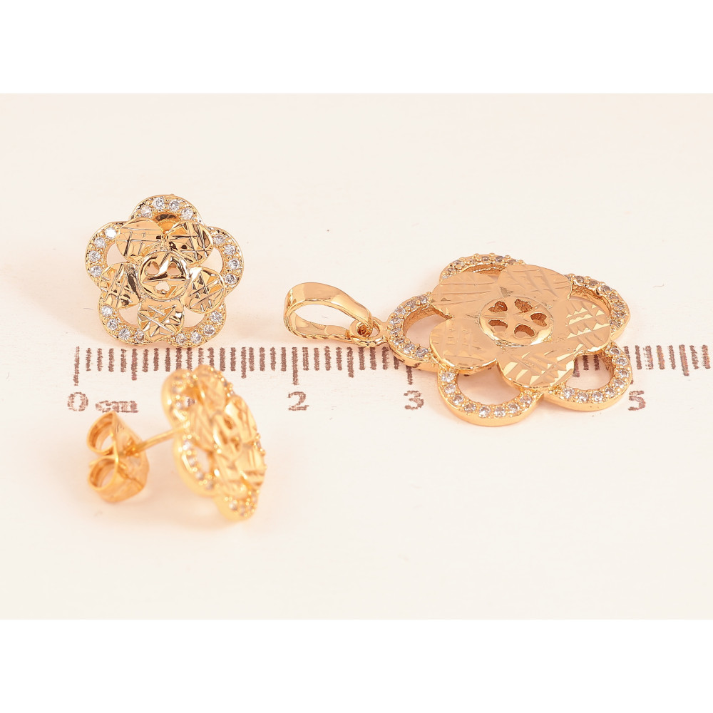 Набір Xuping колір Позолота 18K Сережки Кулон "Квіточки з насічками та кристалами"