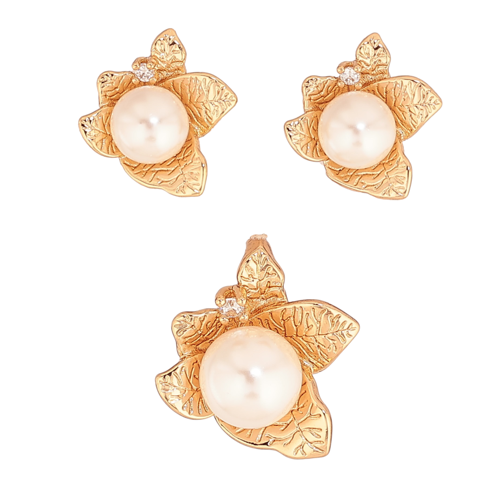 Набір Xuping колір Позолота 18K Сережки Кулон "Квіточки з перлинами"