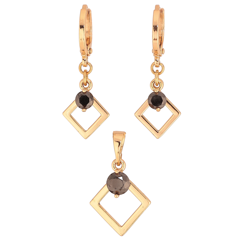 Набір Xuping колір Позолота 18K сережки кулон "Ромбові підвіски з чорними кристалами"