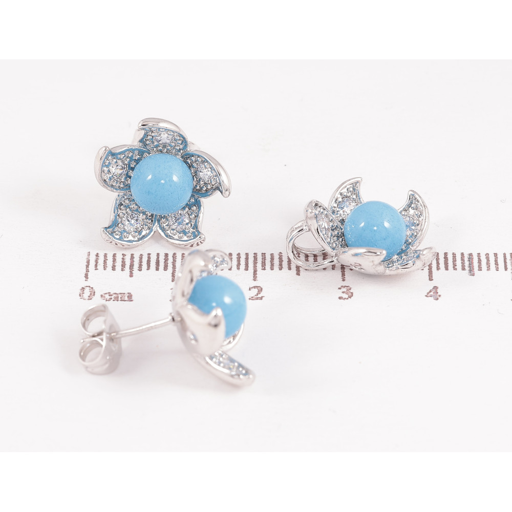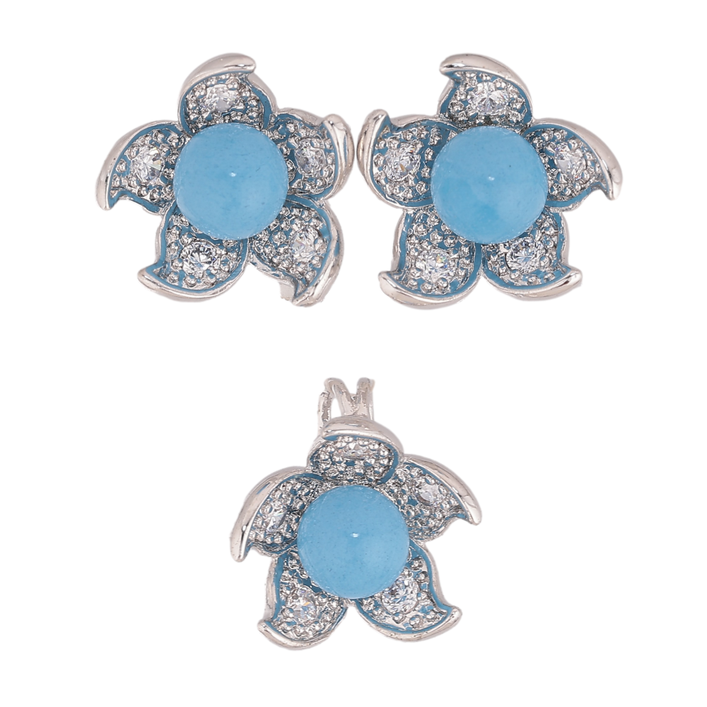 Набір Xuping колір Родій Сережки Кулон "Квітка з блакитною намистиною"