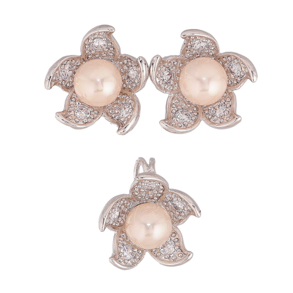 Набір Xuping колір Родій Сережки Кулон "Квітка з перлиною"